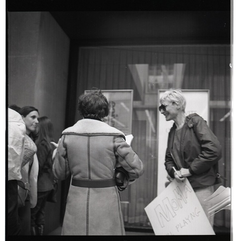 This is a photo of a demonstration by the MoMA and Guggenheim Ad Hoc Protest Committee for MoMA’s lack of women artists in its then current exhibition, Drawing Now. The protests took place in 1976.