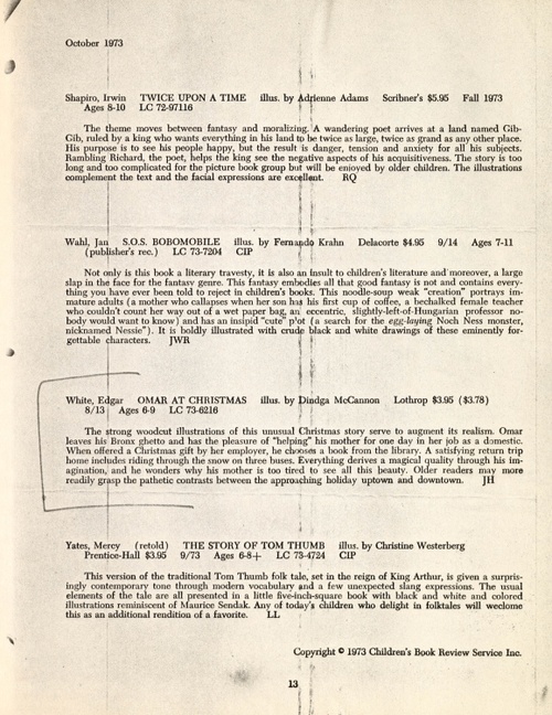 In Copyright - Educational Use PermittedThis is a review of “Omar at Christmas,” one of three books McCannon illustrated for Edgar White, her son’s father.