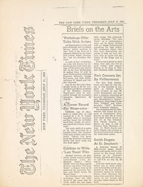 In Copyright - Educational Use PermittedThis New York Times article features information about a series of workshops with five Black women artists, including McCannon. Creative Artists Services and the Brooklyn Museum sponsored these workshops.