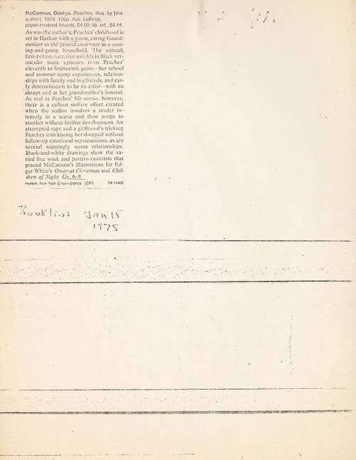 In Copyright - Educational Use PermittedThis is a review of “Peaches,” one of three books illustrated by McCannon for Edgar White, her son’s father.